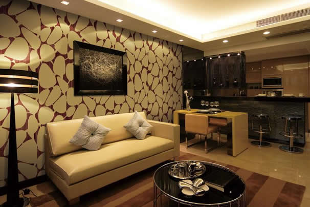 植绒材质客厅墙纸效果图